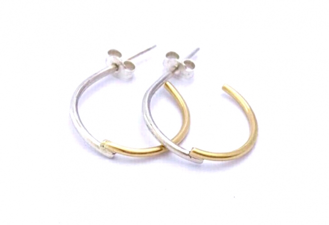 « Back to Earrings Silver and brass 'criss cross' hoop earrings. Hoop diameter approximately 18 - 20mm. Buy