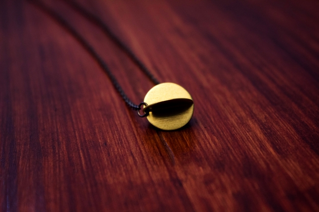 « Back to Necklaces Brass sphere pendant with two circles, on a silver chain. You can also buy this in silver over here: LINK Buy