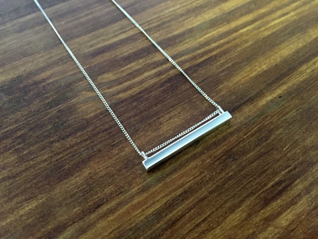 « Back to Necklaces Individually handcrafted silver bar pendant (small= 35mm length, thickness of bar is 3mm) on silver 45cm chain. Buy
