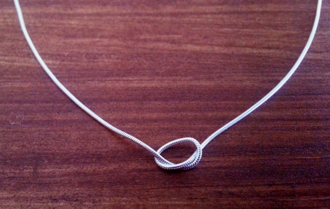 « Back to Necklaces Silver necklace with 'knot' detail Available in 43cm (standard) or 47cm (on request) length. Buy